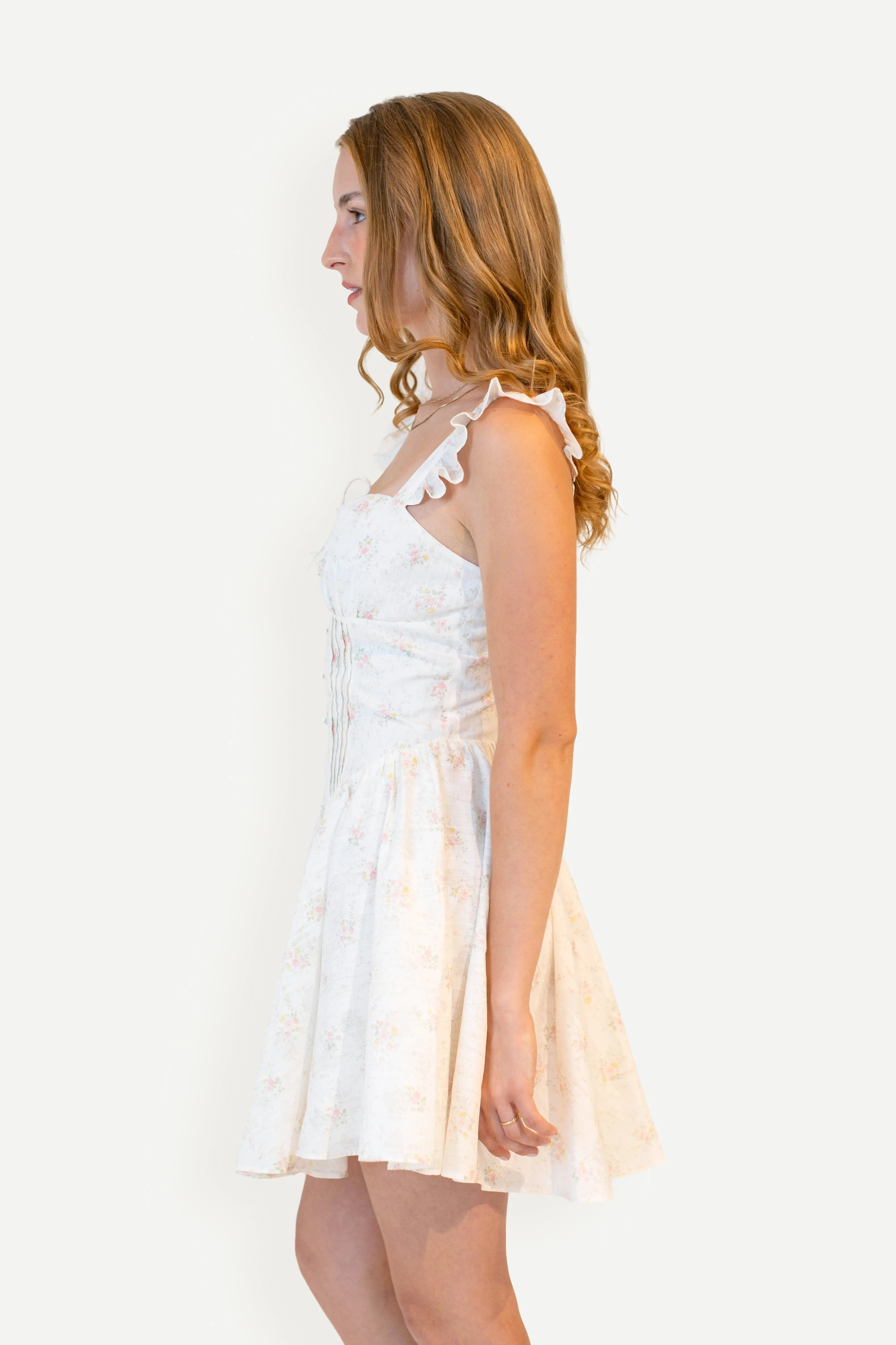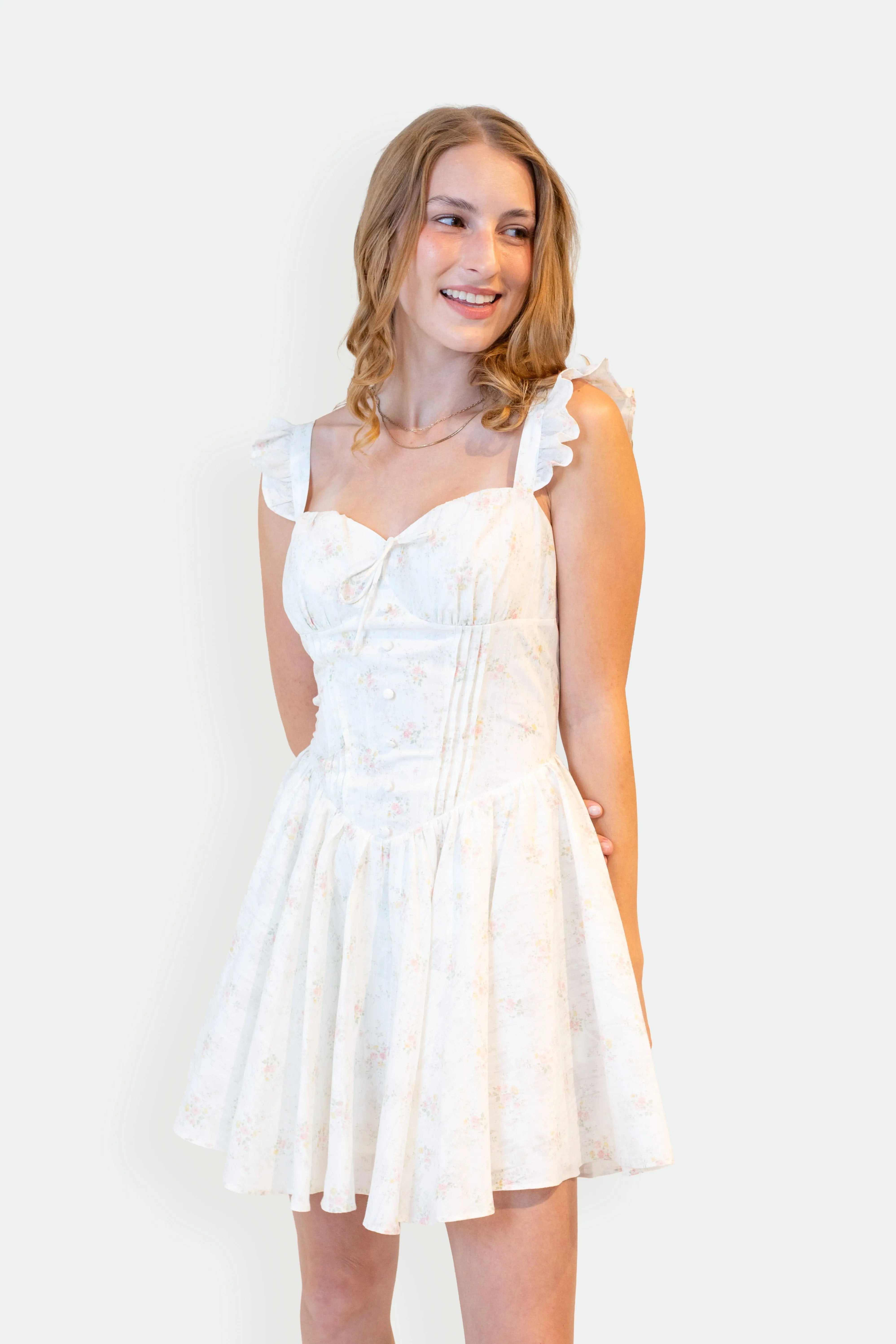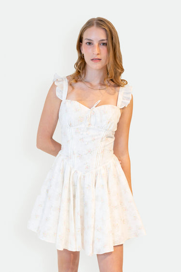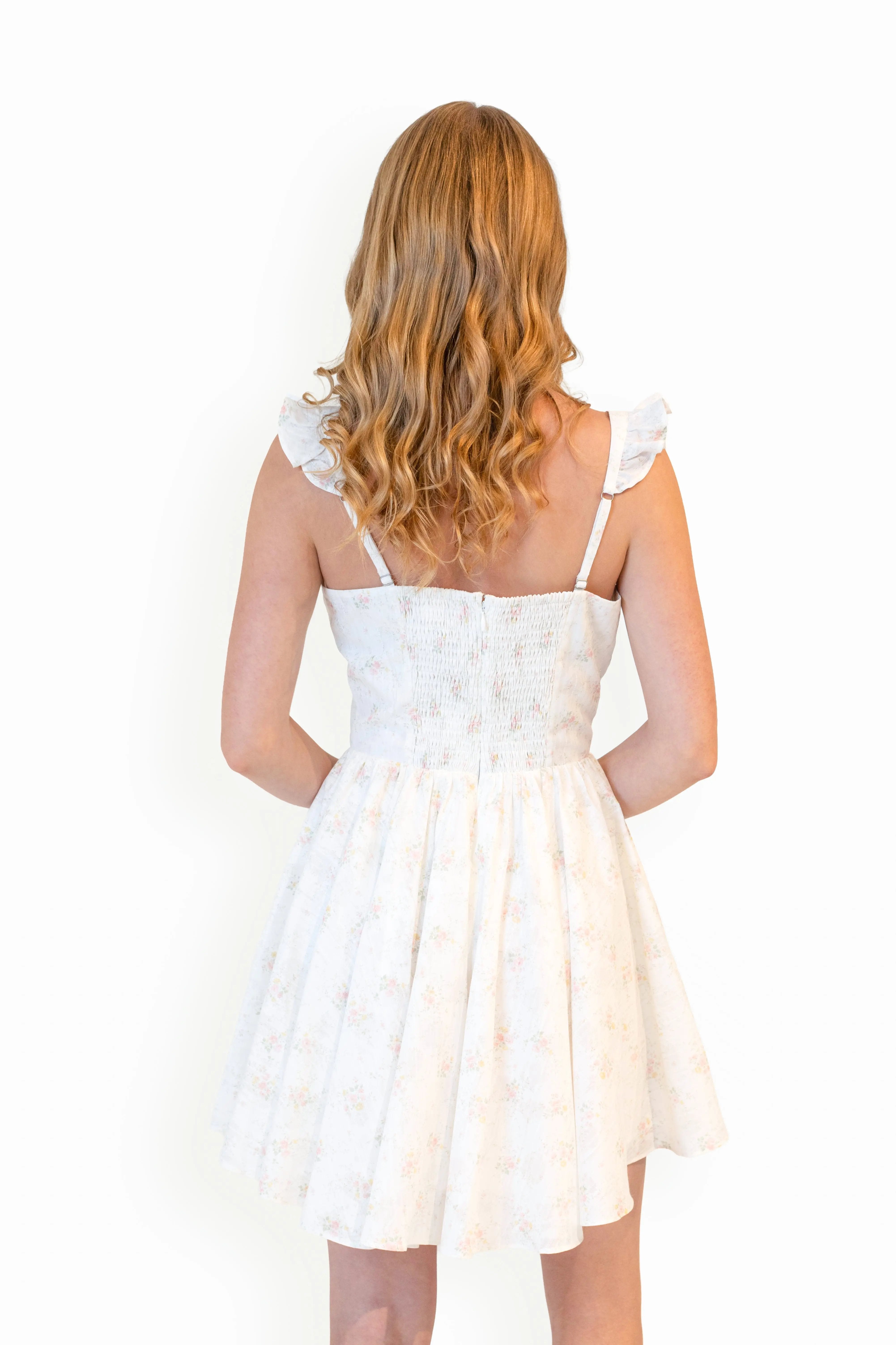 The Ariah Dress is a playful take on a timeless silhouette, featuring delicate flutter sleeves and charming bodice details that enhance its feminine appeal. Its full skirt flows effortlessly, adding movement and a touch of whimsy to every step. Perfect for those who love a sweet, flattering dress with a fun, modern twist.