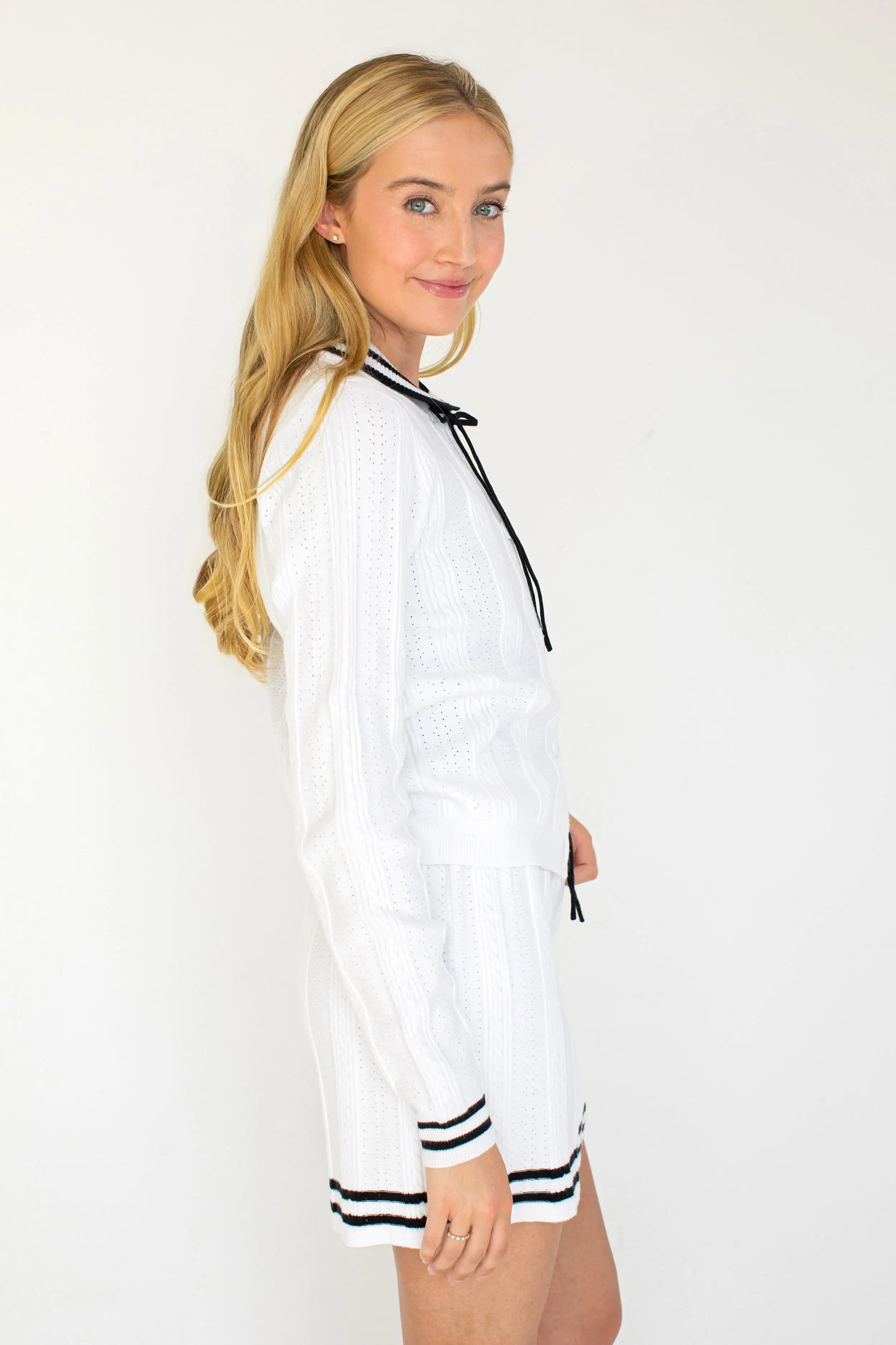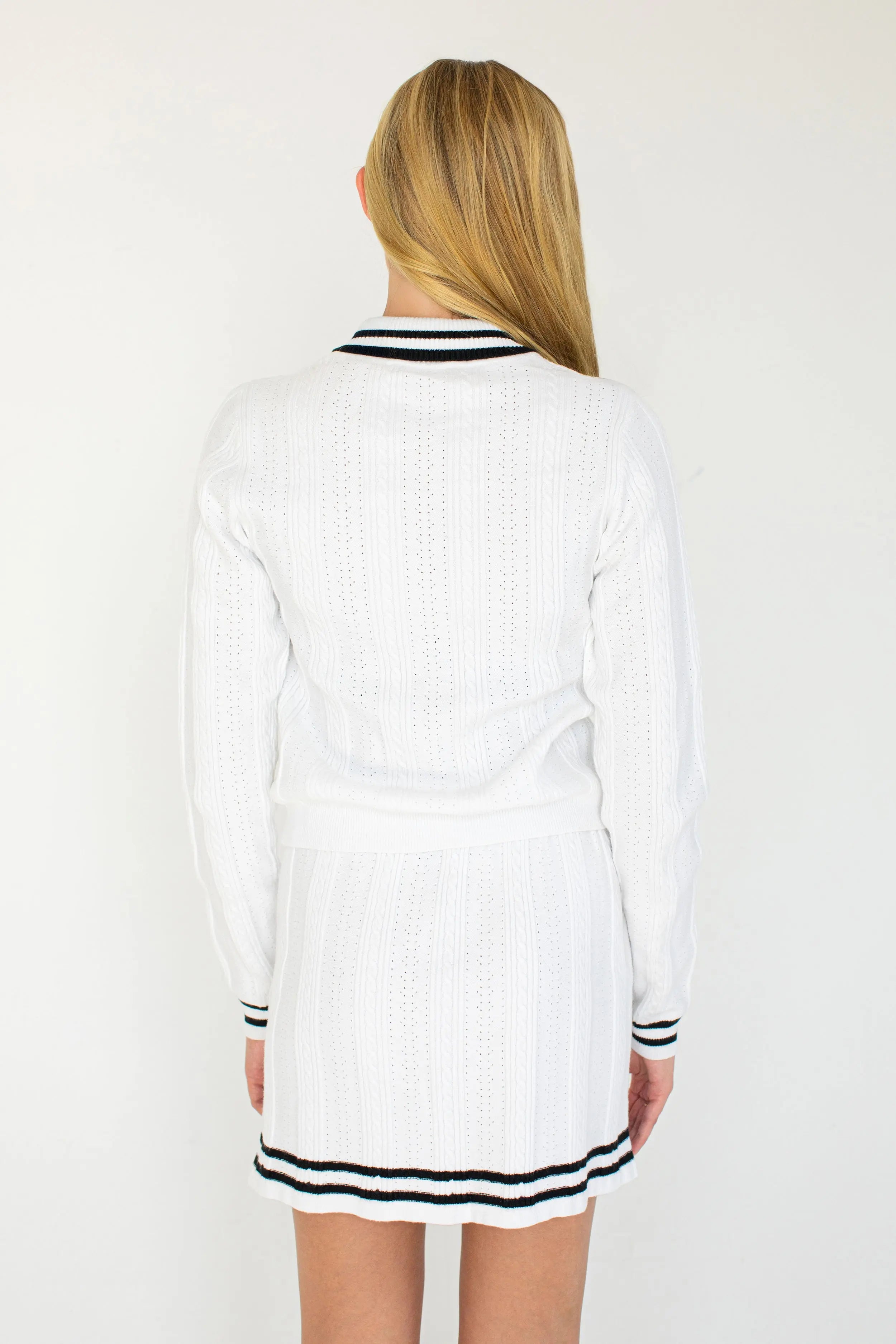 The Naomi Cardigan brings tennis-inspired charm to your wardrobe with a cozy, chic design. Wear it open for a relaxed vibe or buttoned up for a polished look. It's perfect for layering on cool days while keeping your style effortlessly playful.