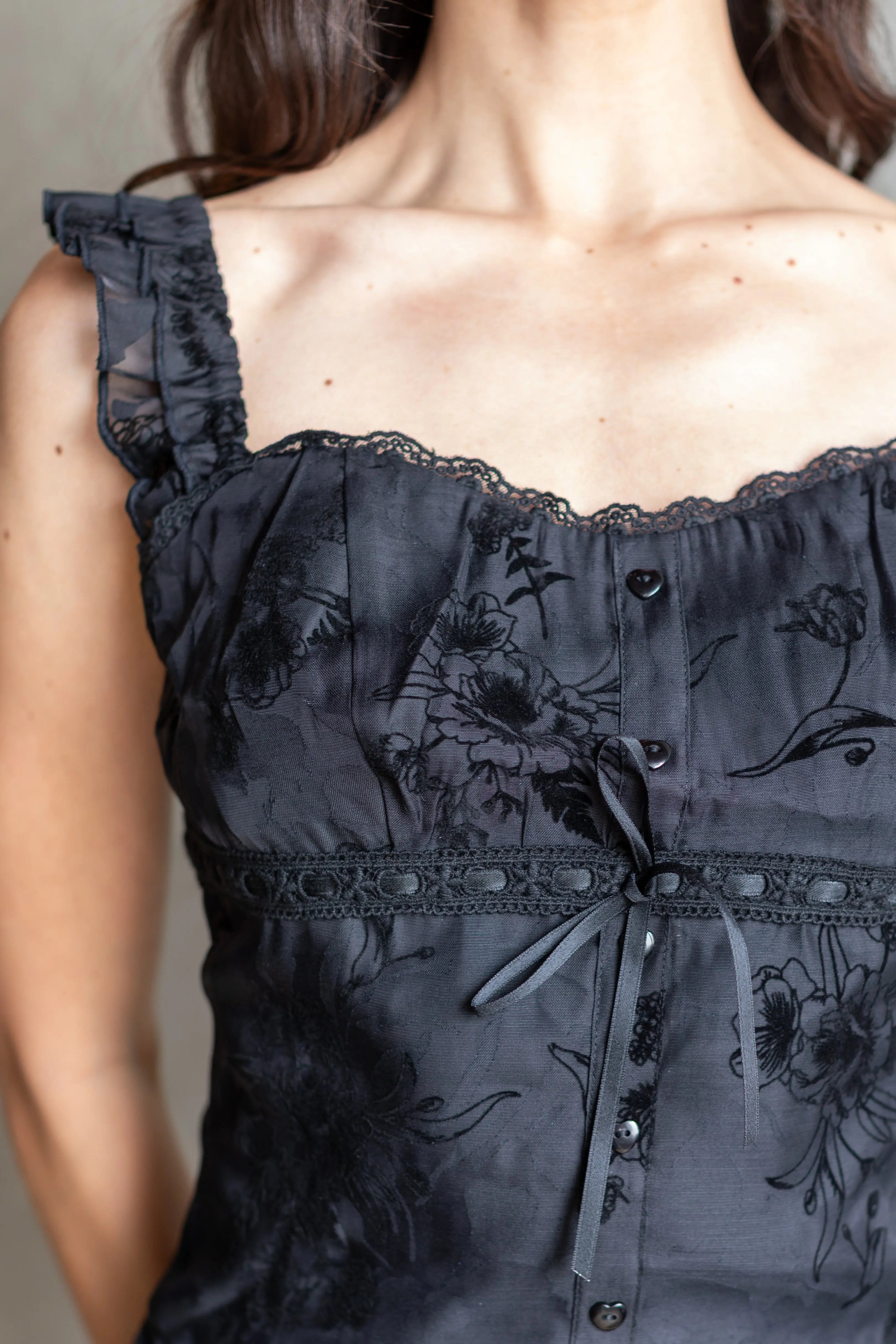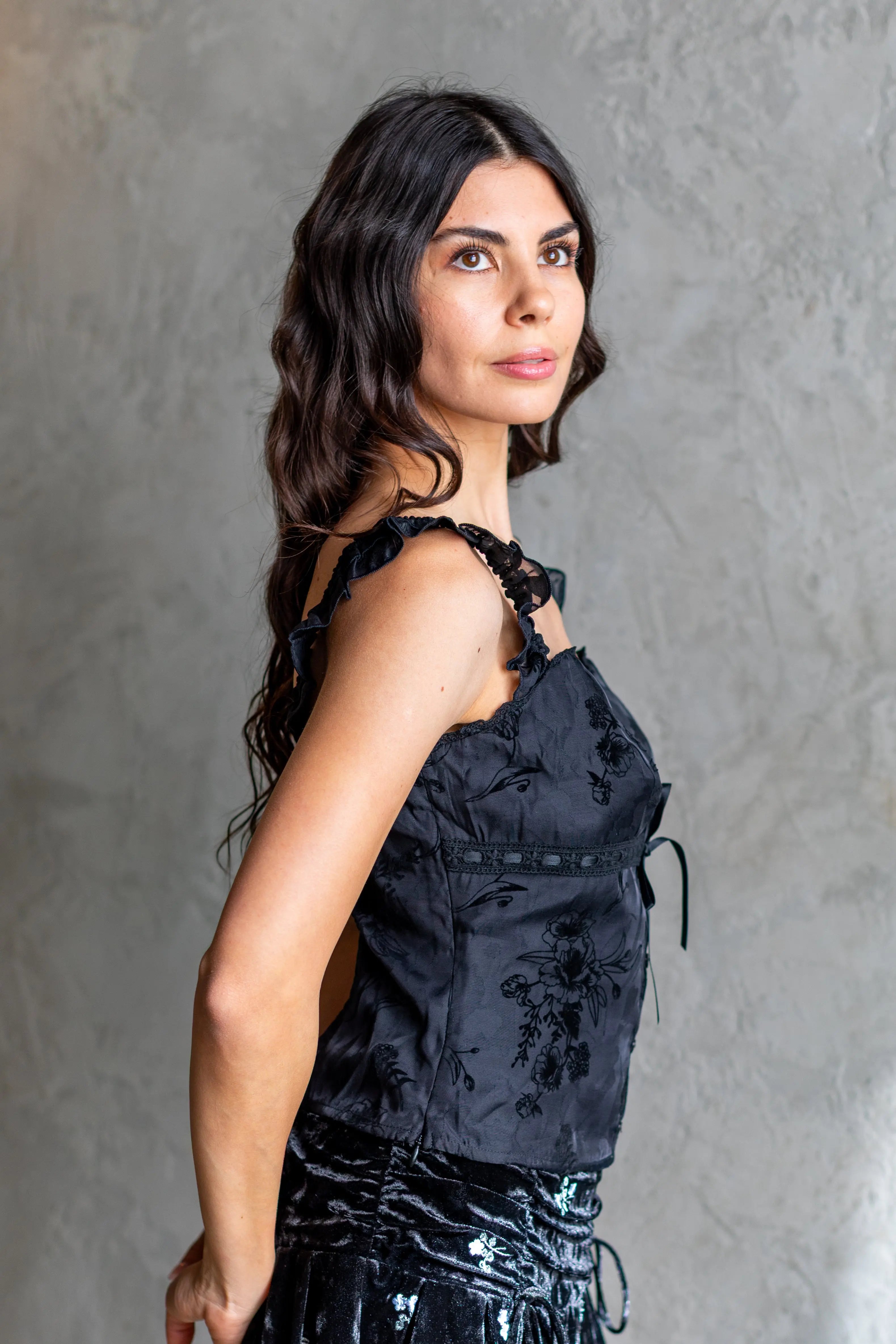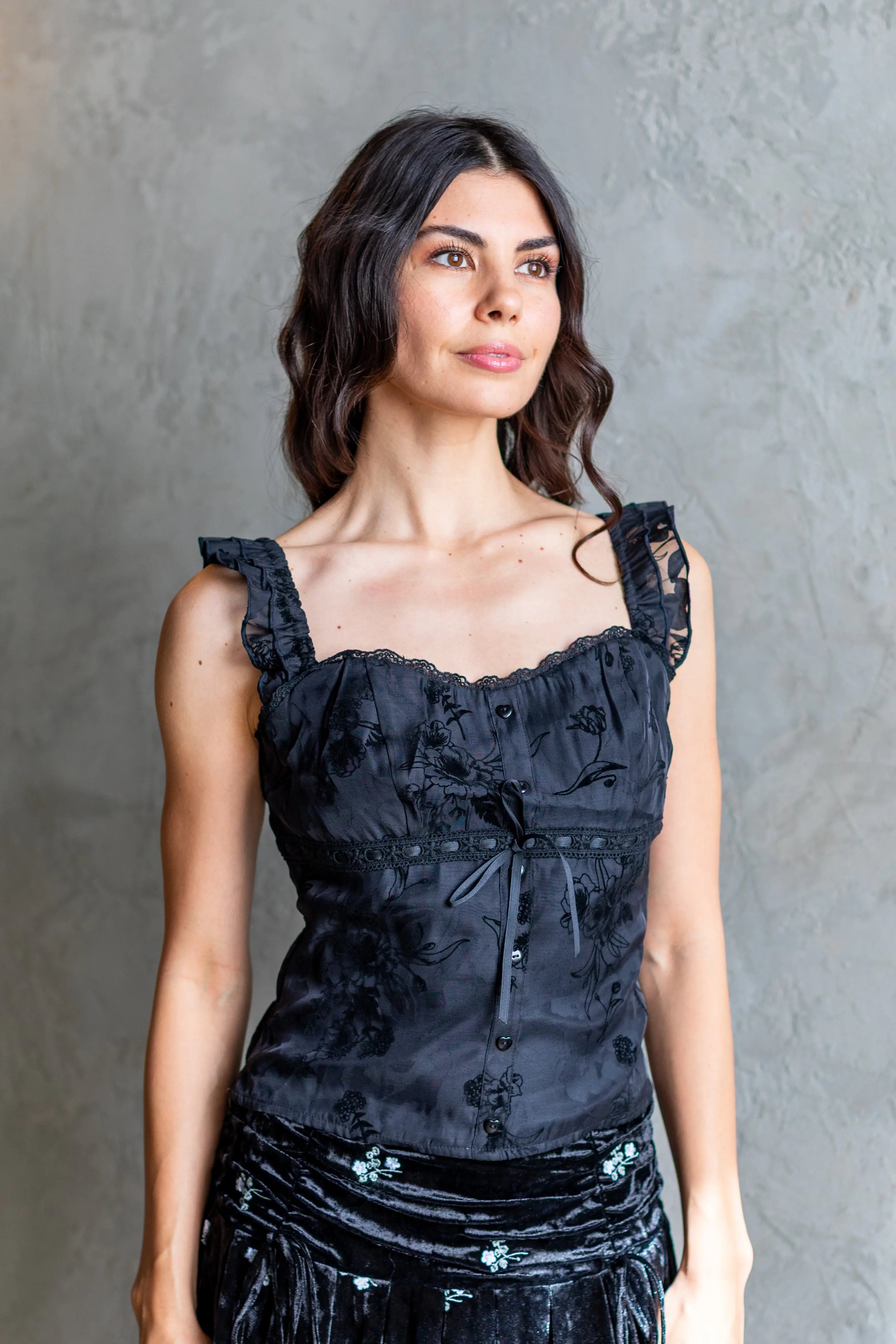 The Meredith Top brings effortless sophistication to your everyday rotation. Crafted with a stunning velvet floral pattern and delicate ribbon accents, this piece transitions seamlessly from casual to dressed-up occasions. Whether you're pairing it with jeans for a relaxed vibe or layering it under a blazer for an evening out, the Meredith delivers that perfect balance of polish and ease.