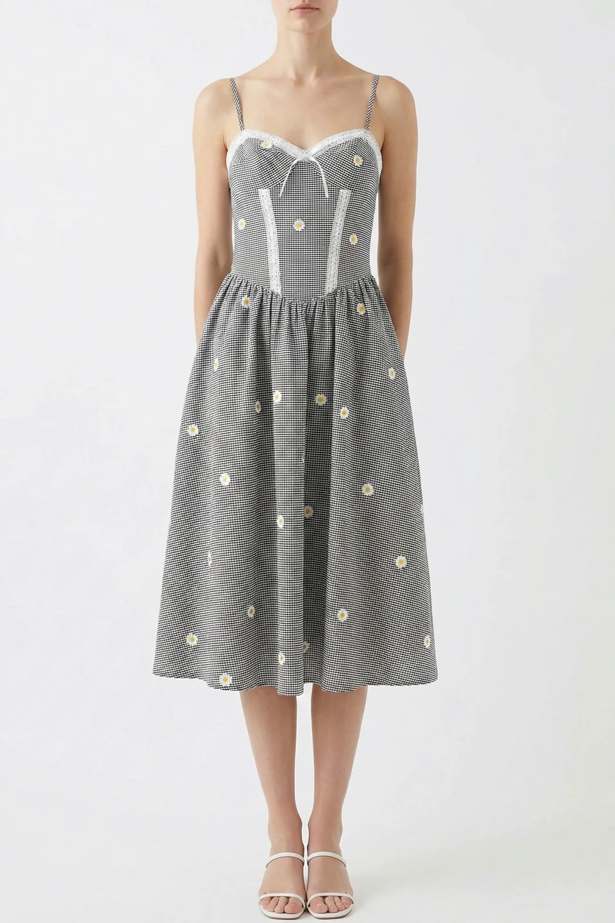 Playful charm meets timeless elegance in this Daisy Dress. Delicate 3D daisy embroidery brings whimsical texture and dimension to a silhouette that feels both classic and contemporary. This is a dress that celebrates joy in every stitch.
