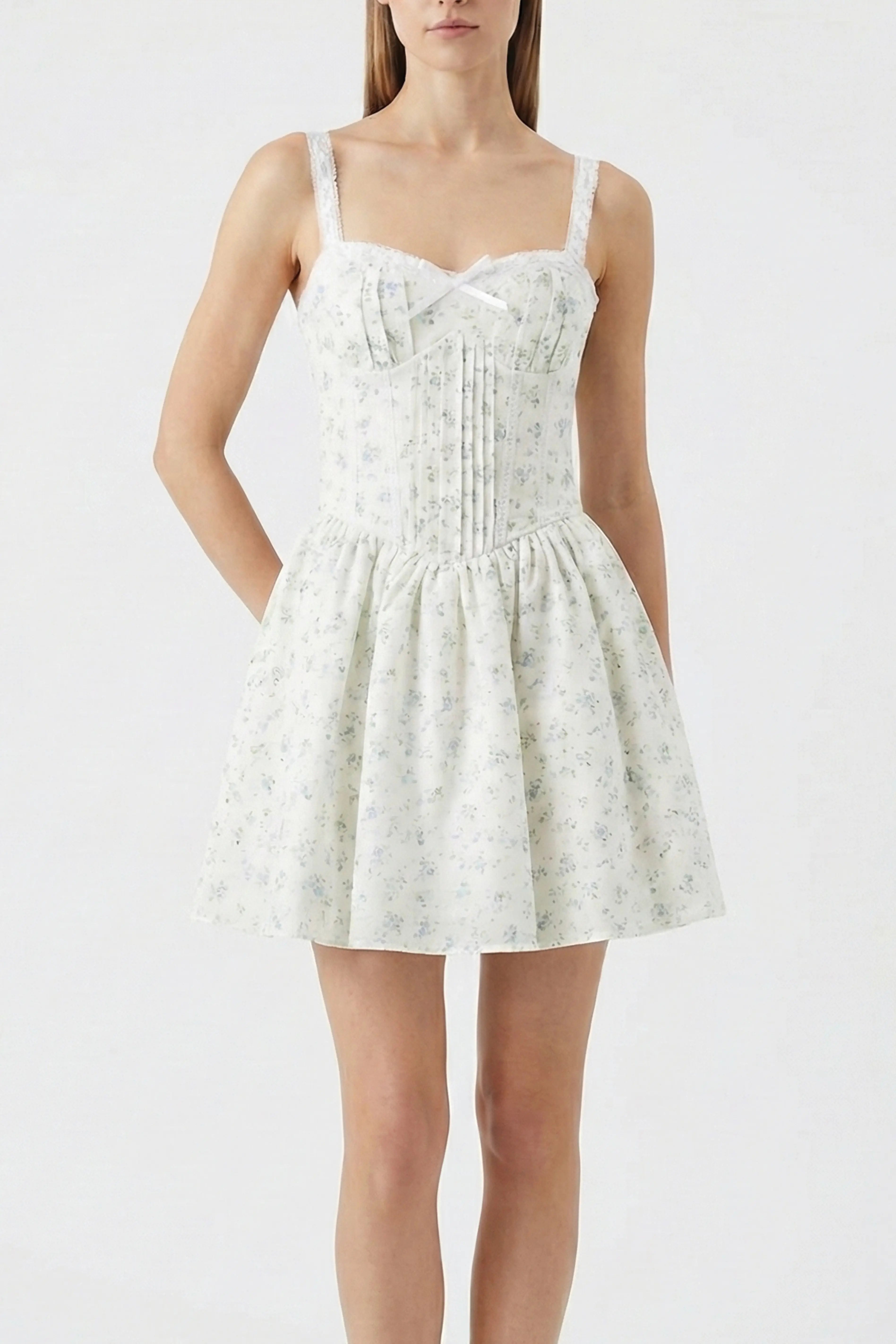 The Marlow Dress cinches at the waist to create an instantly flattering silhouette, while delicate pleating and lace details at the bodice add dimension and romance. Ribbon and lace-trimmed straps elevate the design with an unexpected feminine touch that sets this piece apart.